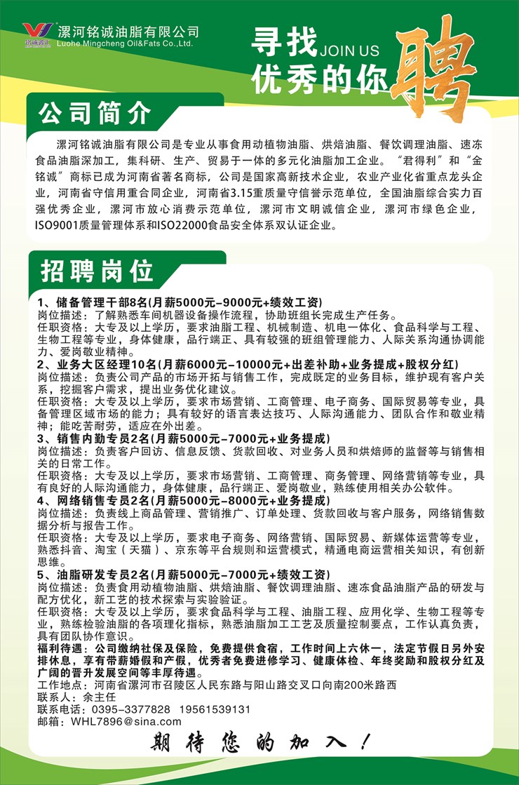 宣讲主题:漯河铭诚油脂有限公司